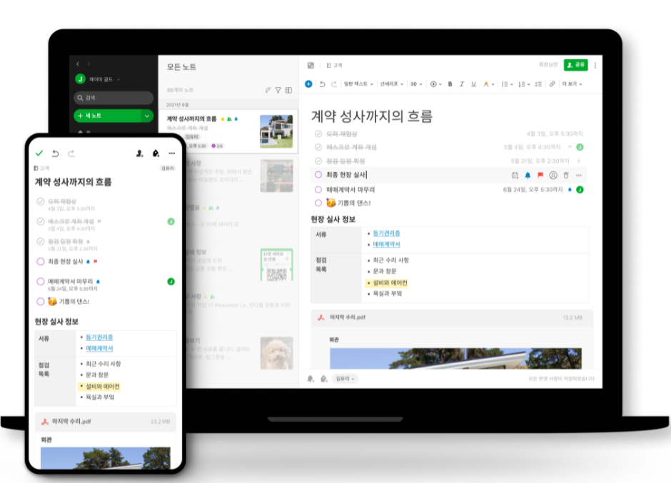 목록에서 메인이 되는 할일 목록을 만들고, 그 하위목록 작성에 필요한 파일첨부, 기한설정, 메모까지 가능하는 등 상당히 상세한 기록이 가능한데다 인터페이스가 직관적이라 사용하기도 편리한 편.